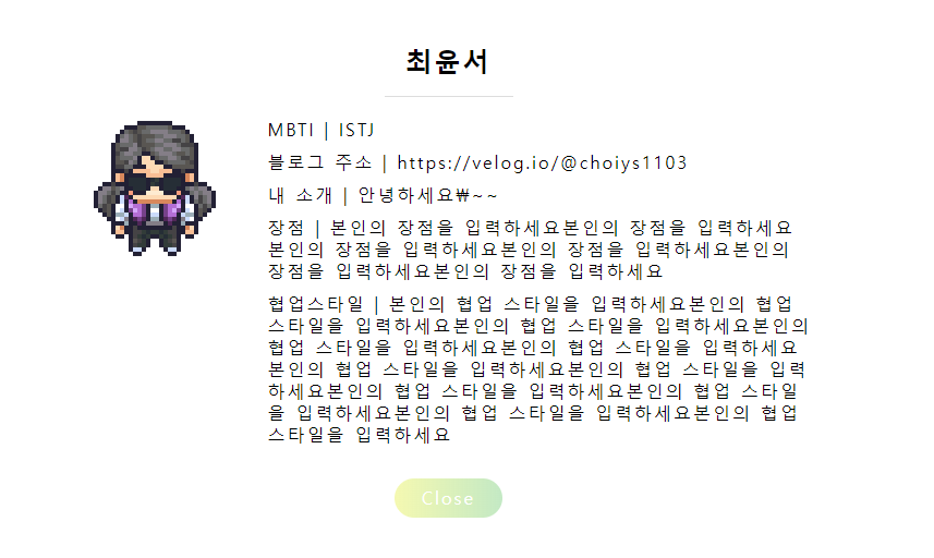 <li class="MBTI"><span style="font-weight:bold;">MBTI |</span> ${member.mbti}</li></br>